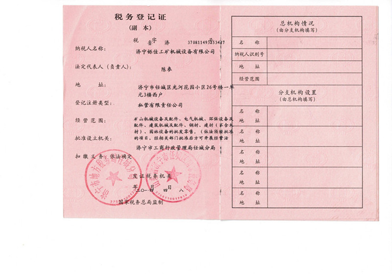 » 税务登记证