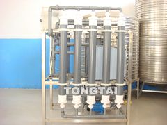 在水处理领域中,超滤设备可以除去水中的细菌、病毒、热源和其它胶体物质,因此用于制取电子工业超纯水、医药工业中的注射剂、各种工业用水的净化以及饮用水的净化。