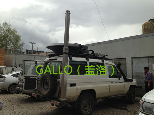 3、车用方式:升降杆是通过在车顶开孔固定,或者安装在车周边,并通过拖盘及支撑架联合固定。