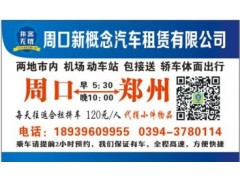 周口优秀的周口拼车提供商 周口新概念汽车租赁有限公司是国内知名的租车代驾服务提供商,总部坐落在周口市周商路与太昊路交叉口。公司成立于2014-10-10,在河南周口、郑州等地区拥有全面的服务网络,我们相信,我们快速、便捷的服务,能换取您满意的微笑!联系电话:18939609955,联系人许发才 周口拼车品牌:新概念 车辆类型:微型车 服务标准:全心全意为顾客服务,忠实履行自己的职业职责 营业时间:周一至周日 付款方式:现结 车辆品牌:现代 价格:商议 服务对象:有需要的客户 服务条款:服务结束,款项结清 类别:商务租车 沈丘周口拼车,郸城周口拼车,扶沟周口拼车 更多相关内容,欢迎来电详询。 与时俱进,创新求变。为了更好的为您服务,我们采用电话预约预约方式和以路程计费计费方式,让您满意和信赖,为消费者提供了快捷、专业、人性化的普及型周口拼车服务。 新概念服务一流,口碑良好,我们用心做服务,用品质维护新老客户关系。我们提供的服务类别繁多,主要以商务租车类型服务为主,公司拥有经验丰富,良好的素养和高强度的责任心的服务团队,为广大的有需要的客户提供周口拼车。为了能更好为客户服务,根据公司发展的状况,现针对周口到郑州的客户提供服务,请各位租车客户提前须知,以免耽误您的出行。 让我们一起看看,周到的周口拼车,周口拼车电话,周口拼车联系方式的信息吧新概念拥有最优秀的管理人员,先进的汽车租赁计算体系,我们一贯遵循以人为本的管理风格,并配备经验丰富,道路熟悉,技术过硬,遵章守法的驾驶人员,提供具有电话预约特色且服务周期为1-3小时的周口拼车。周口新概念汽车租赁有限公司致力于通过优质细化的服务和高档完美的硬件设施服务于社会各界,公司拥有最优秀的管理人员,先进的汽车租赁计算体系,以现代化,网络化的精品经营姿态面对顾客。所提供的周口拼车博得了广大有需要的客户的一致好评。 请登入网站www.xgnpc.com了解更多与方便的周口拼车,周口拼车服务好,淮阳周口拼车相关的品牌