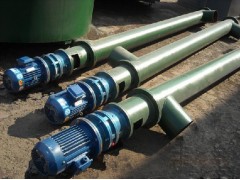 螺旋输送机在输送形式上分为有轴螺旋输送机和无轴螺旋输送机两种,在外型上分为U型螺旋输送机和管式螺旋输送机。有轴螺旋输送机适用于无粘性的干粉物料和小颗粒物料.(例如:水泥、粉煤灰、石灰、粮等)而无轴螺旋输送机适合输送机由粘性的和易缠绕的物料。(例如:污泥、生物质、垃圾等)螺旋输送机的工作原理是旋转的螺旋叶片将物料推移而进行螺旋输送机输送,使物料不与螺旋输送机叶片一起旋转的力是物料自身重量和螺旋输送机机壳对物料的摩擦阻力。螺旋输送机旋转轴上焊的螺旋叶片,叶片的面型根据输送物料的不同有实体面型、带式面型、叶片面型等型式。螺旋输送机的螺旋轴在物料运动方向的终端有止推轴承以随物料给螺旋的轴向反力,在机长较长时,应加中间吊挂轴承。
