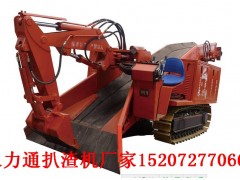 斜井液压凿岩履带式挖斗装渣机是一种实现全液压凿岩、扒渣、装渣、运渣的机组。该机组采用专利技术支腿式液压凿岩机前面凿岩施工,后面用履带式扒渣机扒渣,装渣,平行作业。大大提高作业效率 扒渣机厂家直销,整机组共用一组动力源,所有执行原件的驱动全部由液压油驱动。两台至三台支腿式液压凿岩机经由快速接头及高压油管与机组液压系统相联接 扒渣机价格,按系统统一程序指令控制。机组主要液压元件采用原装进口,质量可靠。前梭槽采用四连杆浮动装置,适用于各种不平底板工矿。整机爬坡能力为斜坡夹角-15度+15度,适用3m×3m及以上的断面平巷及大坡度斜井巷道的施工。