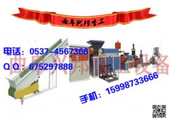 设备简历: 在废塑料回收和再生加工领域内,自身价值较高的原材料比较易于回收,但一些垃圾场杂膜料、再生纸厂产生的废塑料,以及区域化大量集中加工的农地膜塑料、废水泥袋、塑料编织袋等材料,其组分不纯,杂质多,自身价值较低,而且数量庞大,如采用常规加工设备或传统的回收模式,突破不了产量关,就会造成成本的上升,体现不出效益,而个别企业采用自动化程度非常高端,技术含量非常先进的全自动流水线设备.最终也因能耗太高,设备配置不对口,投入产出严重不合理而造成亏损,因此针对此类低档次的软杂废旧塑料,只有在选择设备、合理控制投入、有效的提高产能,必要时尽量延伸加工链(譬如增加填充改性深加工造粒),才能以量大、成本低、利润环节多,体现出较好的经济效益。 三机联合式(也叫三联机或多阶式)造粒机组,大型软塑料造粒机组,纸厂废塑料造粒机组系列设备主要针对软质塑料回收所面临的体积大、比重轻、水份及杂质多、生产要求严苛、产量大的情况而设计,具有强制脱水、大口径强力塑化、集中排气、多阶式熔炼过滤的显著有优特点,能适应多种软杂复合材料的带水加工或湿法造粒。 二、性能特点: 1、大口径强力塑化型主机,扩展型下料口,快速下料。 2、设备具有强制脱水功能,在带水造粒或湿法造粒方面具有上佳表现 3、设备配备特种大功率加热器,具有足够的储备功率,并且节能效果突出。 4、造粒机的螺筒螺杆采用合金材质深度抗磨损技术,除了具有较好的脱水排气性能外,还具有超强耐磨特性。 5、大型自动换网器适应软质塑料、混合塑料的加工,最大限度地延长换网间隔时间.且省时省力。 6、根据不同用户加工需求.在单主机双副机的基础上,还可改配为多级过滤的双主机、单副机的联台机组。