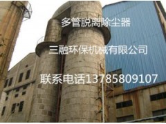 多管脱硫除尘器系干法除尘、湿法脱硫的组合设备,干法除尘部分采用厚釉质的陶瓷旋风子,耐磨损。含尘气体沿切线分散进入旋风体内,烟尘在离心力的作用下,尘粒与气体分离,尘落到集灰箱内,经卸灰阀排出,净化后的烟气经排烟管道进入二级脱硫。