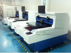 本机主要用于超薄玻璃、光学玻璃、触摸屏、非晶硅太阳能电池、钢化玻璃膜、大尺寸TFT开料的专用的切割设备;该设备即能切直线也能切割异形,双CCD镜头下手动移动玻璃对位, 或靠边角定位销定位,度灵活性强,操作易懂,工业计算机控制,采用CAD文件直接转换切割文件,单独设定每条刀线的切割顺序及刀深刀压等参数,可存储多种不同尺寸的参数随时调用,龙门式结构,伺服电机控制效保证切割精度、速度等特点, 大理石平台平面度好,玻璃真空吸附后配合气囊式低摩擦刀架快速切割让线条更佳。