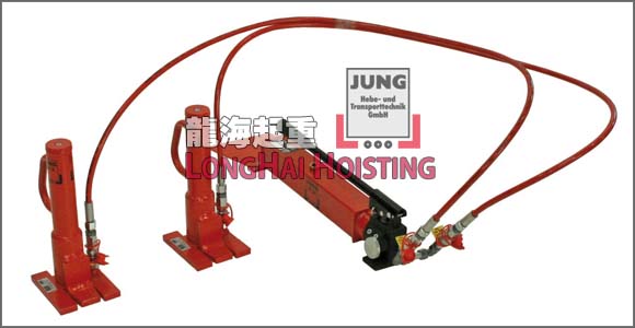 德国JUNG分离爪式千斤顶是由单个液压千斤顶和油管、液压泵等组合使用的成套分离式千斤顶。组合中的回位助力小车JRS1可以轻松的使千斤顶回位。