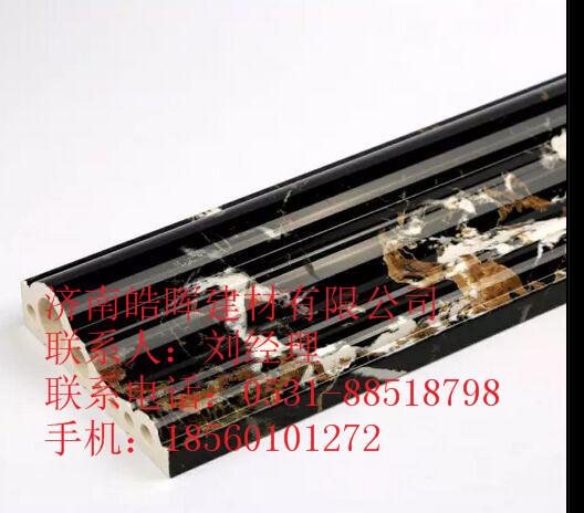 1、 工艺:石塑uv仿大理石板材是皓晖公司自主生产的新型装饰材料。基材是钙粉和PVC科学混合后挤压一次成型。表面通过热转印工艺真空压印仿大理石图案,做uv氟碳清漆。