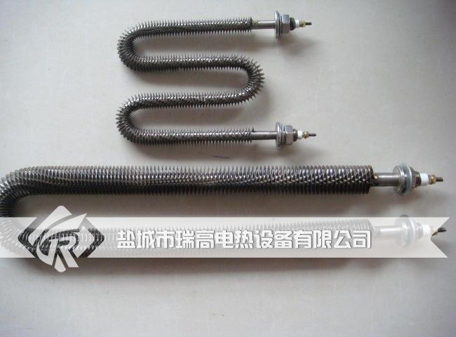 翘片式电热管(不锈钢翘片式电热管,翘片式电加热管)是在普通电热管上绕上金属(不锈钢,碳钢,铜)散热片,其表面负荷是普通加热元件的1-2倍,功率设计:加热静止状态空气每米1000W(瓦),鼓风机热风循环为每米2000W,同等条件下,具有体积小,升温快,寿命长的优点。