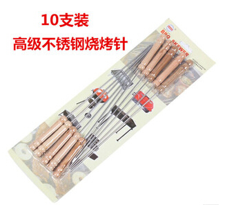 商品材质:食品级不锈钢木柄烤针(10支装)