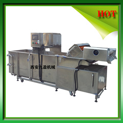 将切割好的蔬菜、水果,采用高压气泡水浴冲击下,使物料在水里翻转,有效地分离蔬菜表面的泥沙、杂质、污物,水流的