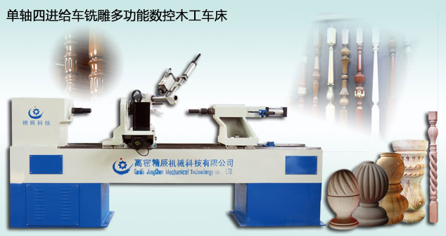 高密精辰机械科技有限公司www.gmjckj.com自主研发JCYT系列双轴四进给车铣雕多功能数控木工自动车床和双轴五进给车铣雕高配多功能木工数控车床,适应于多种行业,如实木家具加工、家装设计、实木楼梯制作、木工装饰施工、生产实木衣架 18053688658等。可加工各种木材,如花梨木、橡木、榉木、沙比利、椿木、波萝格、柚木、水曲柳、桦木、檀木等。根据木工行业市场产品的复杂化、多样化,满足各种加工要求,设备可在完成车削的同时,能够进行铣削、拉槽、雕刻等多种不同的加工方式,车削速率快,加工精度高,产品一致性好,获得广大用户的一致好评。详情联系: