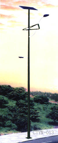 系统由太阳能电池组件部分(包括支架)、LED灯头、控制箱 (内有控制器、蓄电池)和灯杆几部分构成;太阳能电池板光效达到127Wp/m2,效率较高,对系统的抗风设计非常有利;灯头部分以1W-5W白光LED和1W-5W黄光LED集成于印刷电路板上排列为一定间距的点阵作为平面发光源。
