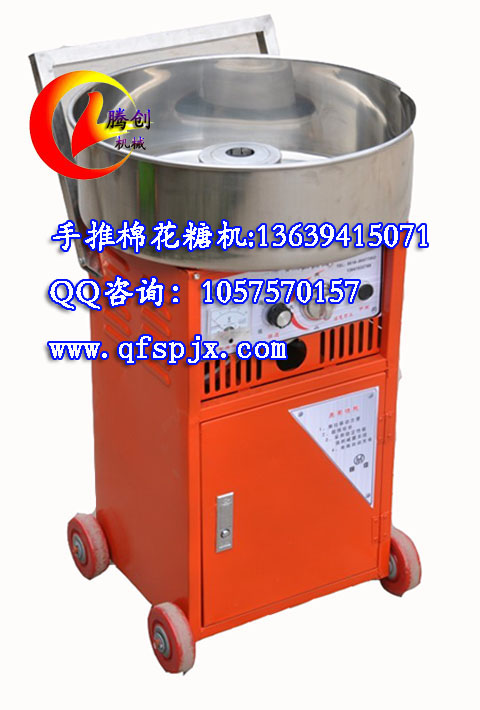 手推式棉花糖机,采用推拉式的先进设计,整机不锈钢材质,干净卫生,并带有四个方向滑轮,固定流动模式任你选。能做彩色棉花糖,各种果味棉花糖,拉丝效果好,工作时可拉出3-5米飘带式糖丝,吸引到很多人围观,达到免费宣传广告的效果,让你的棉花糖生意红红火火!最新款彩色棉花糖机参数