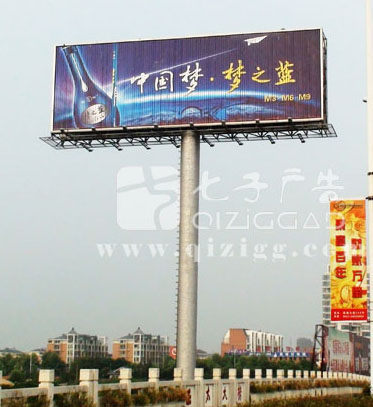 单立柱广告牌制作是户外广告牌的一种。主要是指在公路,包括高速公路、城市公路、立交桥等主要路段旁树立起高大、醒目的广告牌。单立柱有两面,三面之分,也有及少数的四面高炮。