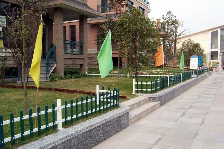 PVC护栏广泛应用于别墅、社区、庭院、学校、工厂及其它建筑的围墙、花坛、草坪、园林、道路、河滨、阳台、楼梯等场所!安全、环保,对人(畜)无害,即使无意触及护栏也不会像钢,铁护栏那样伤人。护栏内配有衬钢进行增强,具有足够的强度和抗冲击性能,使PVC护栏兼具钢材的强度和PVC的美观!