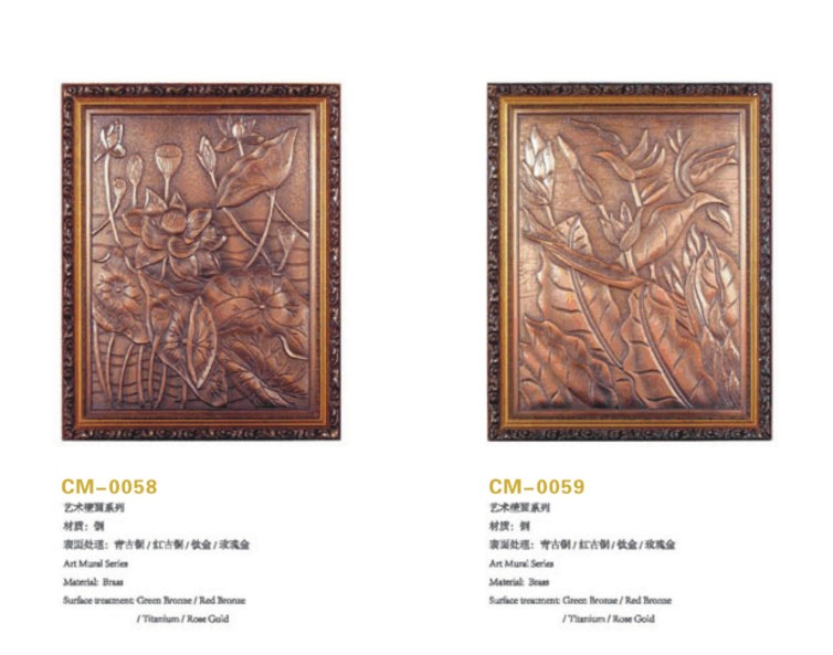琛玛五金厂拥有擅长各类画风作品的专业画师不断推出新颖、时尚、独特、美观大方、高贵典雅、色彩丰富、装饰效果极强的作品,主推的艺术壁画以铜为主要材质,采用雕刻工艺的工艺完成作品,出售的作品客户可通过银行转账进行付款交易。