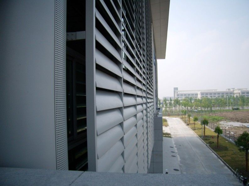 l 可水平或者立式(含固定)安装,适用于各种现代建筑的大型玻璃幕墙和玻璃天顶,平面、立面和斜面建筑室内外遮阳,结构宏伟大气,叶片颜色可根据客户要求选择,完美配合建筑装饰。