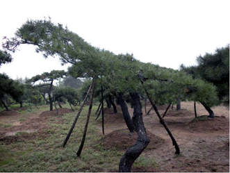 油松等针叶树种移栽时要带土坨,油松的毛细根多,蓄水保水能力差,如果在移栽过程中造成散坨,大量的毛细根被损伤,严重影响水分的吸收,降低成活率。