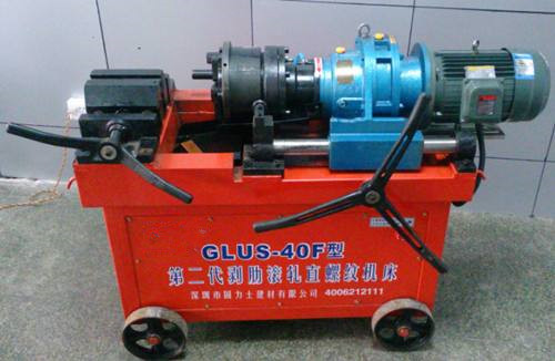 HGS-40B型钢筋直螺纹滚丝机。主要用于建筑工程带肋钢滚轧直螺纹丝头,是实现钢筋连接的关键设备。可加工直径16-40mm的HRB335和HRB400级带肋钢筋。
