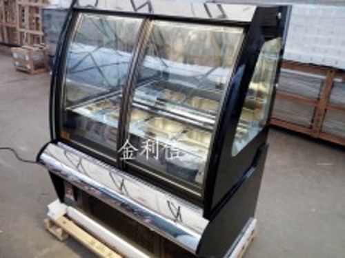 冰淇淋展示柜,它的制冷原理是利用冷气吹出,让冷气均匀的覆盖到柜内的各个角落达到产品冷冻的效果。 冰淇淋展示柜正常设定的温度在-16~-18度之间,主要放置冰淇淋食品,主要起冷藏保鲜展示的作用。