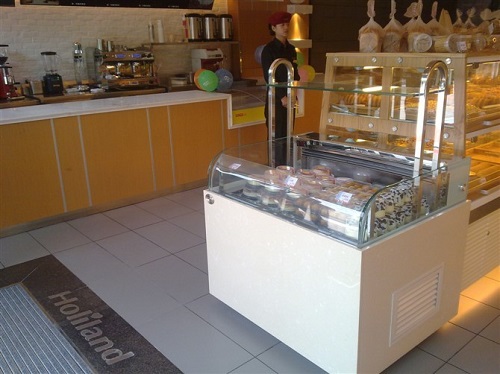 B:构造:采用敞开式设计,方便蛋糕店顾客取放面包蛋糕,进行选择。