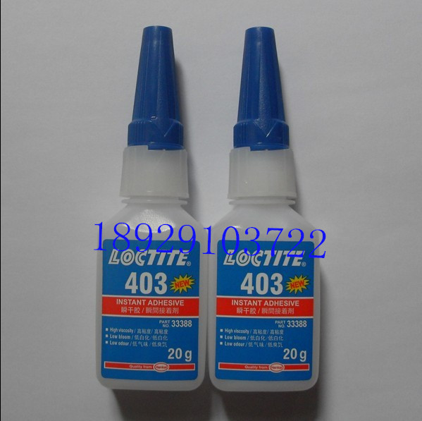 乐泰403瞬干胶,低气味、低白化:耐湿性好,用于非精确配合零件的粘接;不需要复杂通风系统。主要粘接基材:塑料、金属、人造橡胶 颜色:透明无色至黄色 类型:烷氧基乙基 粘度(mPa.s):1.100/1.650 剪切强度(mpa):14/22 固化速度(全固):50秒/24小时 相对密度:1.1 包装规格:20g瓶装 500g瓶装 陕西省 西安市 铜川市 宝鸡市 咸阳市 兴平市 渭南市 韩城市 华阴市 延安市 汉中市 榆林市 安康市 商洛市 以上城市 以上产品:大量现货、原装正品、优价出售、发货准时;公司贯彻执行以“质量第一!诚信第一!顾客至上!永续经营!”为发展经营宗旨;为每一位用户提供优质完善的服务;谒诚欢迎您的来电订购咨询。0.7.6.9-8.5.7.8.8.1.8.0。QQ:1131696472 , 欢迎来电购买乐泰胶水 我们将竭诚为您服务!!