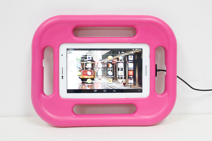 此款产品采用优质eva制作而成,使用起来舒适柔软。整个保护套被玫瑰红的色调装饰得更加耀眼、秀气。为防止滑落的四方位手柄,是该产品最大亮点,它为使用者拆装平板电脑和手提平板电脑提供了便捷。