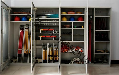 (2)柜体表面为静电腐喷塑工艺,颜色为驼灰皱,柜门装有通体透明有机玻璃,透过玻璃门可以看到分类有序的各种工器具。