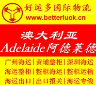 广州深圳起步到Australia澳大利亚Adelaide阿德莱德整柜海运专线