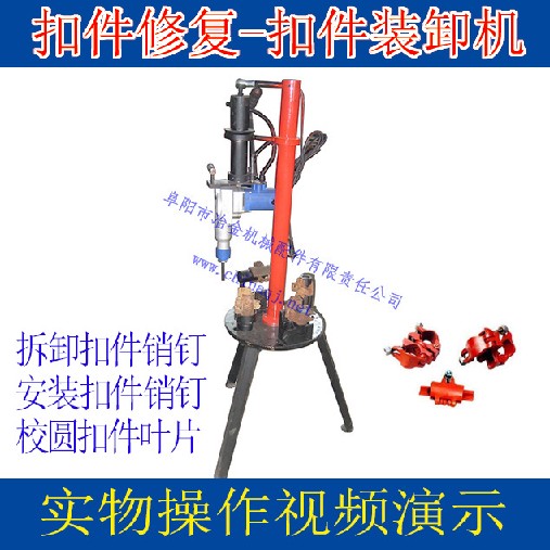 目前市场上都是人工用锤子一个一个的将销钉砸掉,再用锤子一个一个的砸上,费时又费力,劳动强度又大很难有工人愿意做这份工作,棋剑牌扣件拆装机只需将扣件放在磨具上按下冲击装置,轻轻松松便可将销钉取下或装上,本台设备无需人工手扶扣件大大提高了对操作者的安全性,棋剑牌扣件拆装机操作简单、省时省力、使用安全,即使是女操作工也能完成,解决请工难的问题。