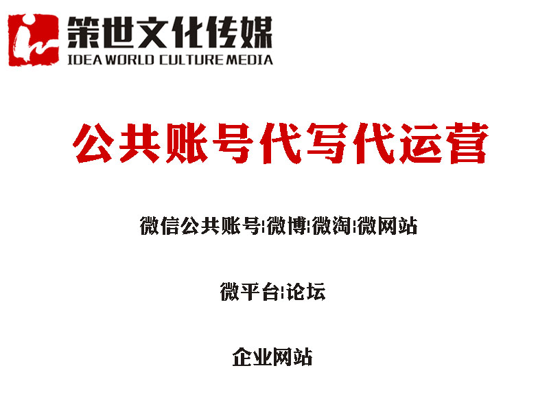 济南策世文化传媒提供专业的公共账号代写代运营作为山东省一家以公共账号代写代运营为主营业务的有限责任公司,济南策世文化传媒秉承“至诚服务,追求完美”的服务宗旨,为众多有需要客户提供了整体解决方案,以敏锐的市场洞察与策划,在设计服务已风生水起。 增值服务:免费提供早餐 公共账号代写代运营品牌:策世 服务特色:可电话预约 服务条款:服务项目最终解释权归我司所有 展现形式:文案展现 预算:200-1000元 设计类别:服务设计 策划项目:管理策划 服务标准:服务第一、质量第一、技术第一 营业时间:周一至周日 计费方式:以项目计费 服务周期:一个服务周期 价格:商议 请认真阅读以上信息 贵州微信公共账号代运营,辽宁微信公共账号代运营,云南微信公共账号代运营,潍坊微信公共账号代运营,广东微博代写代运营 如果您还没有找到想要的,北京微信公共账号代运营,广西微淘代写代运营,青岛微淘代写代运营相关信息,请继续往下阅读我公司提供的公共账号代写代运营服务,预算一般是,支持现结;银行转账;在线支付等支付方式,为有需要客户提供便捷高效的交易服务。 济南策世文化传媒凭借多年的行业经验和对技术的不断探索,对设计策划类商业服务有着专业的理解与成熟的服务体系,提供的公共账号代写代运营,已为全国各地区有需求的个人和企业提供了大量相关服务。 济南策世文化传媒位于济南市市中区铁路玉函五区8号楼1505室,以电话预约;网上预约;到店预约的方式预约,采取现结;银行转账;在线支付的付款方式,是有需要客户的第一选择。 感谢阅读本文章,我们等待您电话咨询江西微博代写代运营,青海微淘代写代运营,上海微淘代写代运营www.ceshiwenhua.com信息