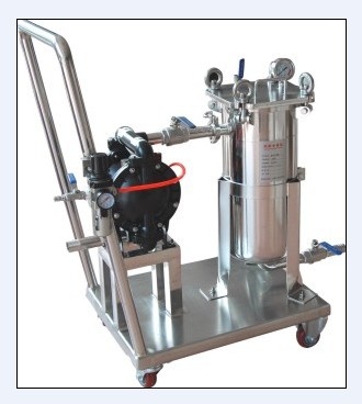 英格索兰ARO气动泵油墨袋式过滤器 也包括一台不锈钢袋式过滤器和一台进口英格索兰ARO气动双室隔膜泵, 一台手推车, 隔膜泵进料口可用DN25DN50等配合软管连接,把需要过滤的液体物质抽进泵后经过袋式过滤器,利用汽压产生的压力过滤出来再从过滤器的出口流出。过滤器和隔膜泵都装置在手推车的安装平台,可随意移动到任何工作生产线上一步到位固定安装进行过滤。是粘稠性较高的物质过滤最佳选择。本厂可以根据客户需要上门设计工程方案。