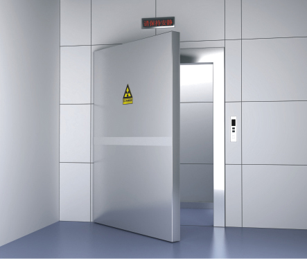 (1)防护门屏蔽作用:外面为不锈钢钢板,一般尺寸大小为高2150mm*宽1300mm*厚100mm,内设龙骨,衬2-3mm屏蔽板(根据不同的科室的射线仪有不同的材料要求与厚度要求),使工作人员剂量达到国家管理目标值。