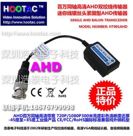浩泰电子AHD百万同轴高清带宽 720P/1080P 300米亮度彩色清晰度还原  -45度至+85度工业级产品 CE/FCC/RoHS GREEN POWER国际标准兼容纯外销机型  百万同轴高清AHD双绞线传输器 迷你线镙丝头 紧固型AHD双绞线传输器
