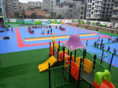 为儿童提供安全、环保、高品质的园所环境。温馨、舒适、整洁、明朗、充满童趣的园所环境,是每位园长的心愿。现在很多幼儿园都在建设室外塑胶场地,因为它能为孩子们提供更好的保护。我长期从事塑胶场地的建设,愿为大家提供一些相关的经验,以供参考。 一、在材料的选择上,我们应注意以下几方面的性能和功能: . 1.环保性 保证产品属环保产品并有相关的证明。低毒、低排放型。施工、生产合成时应用技术手段来控制有毒、有害物质的积聚和缓慢释放、因其毒性轻微、对人类健康不构成危险的材料。 2.防滑性和稳定性 运动地面不能采用发泡底层材料,就应采用聚胺脂材料,能在场地铺开后结合人工用滚地筒将地板与地面接触间的空气排出,形成相对真空状态,更加具有附着力,在运动时更具有稳定性。不易摔倒。 3.舒适性 表面材料选料要求:与阳光亮度吻合,不会吸光和反光刺眼,能更好的保护小孩子的眼睛,不易产生疲劳,总厚度达3—5mm或以上,配以适当发泡底层为缓冲层,使其更具有减震性和反弹。有效地减轻了小孩子的腿部冲击力,脚感舒适,更好的避免了运动损伤。