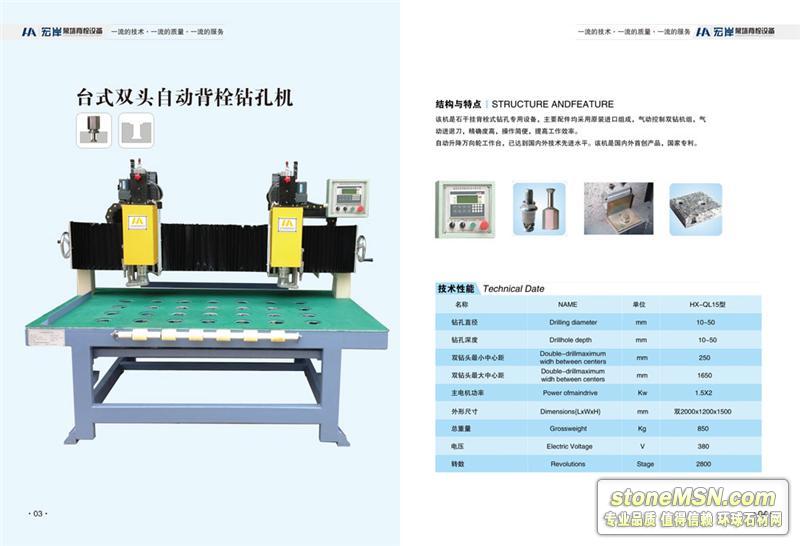 恒信幕墙设备背栓机有什么特色 福建背栓机 能为广大客户服务是我们公司的荣幸,我公司提供的背栓机在生产制造中,有专人品管,对每批产品进行严格把关,产品质量可靠。背栓机主要是用于作为PC45`孔、直孔、拉槽、拉沟、石材防护,并以需求群体为主要销售对象,在福建省及周边地区拥有很好的口碑。恒信幕墙设备同样将以更卓越的品质、更满意的服务、更合理的价格回馈广大客户。 一直以来,恒信幕墙设备在服务上不断地超越顾客的需求,在生产上不断地超越产品的需求,在客户正式下订单后,恒信幕墙设备提供的背栓机可支持银行转账的方式支付货款,并且会在工作日时间内为需求群体派送,运费买卖双方协商,力求交易过程中高效、便利。 福建背栓机,厦门背栓机,背栓机批发 我们用数据说话。 背栓机品牌:恒信 生产厂家:福建南安市恒信幕墙设备 生产地址:南安市水头镇世纪新城3幢80 售后维修地区:全国 保修期:一年 服务地区:全国 价格:商议 产品名称:背栓机 销售对象:需求群体 用途:作为PC45`孔、直孔、拉槽、拉沟、石材防护 销售方式:批发;零售;直销 产品等级:高级 物流方式:陆运 让我们一起看看,晋江背栓机,重庆背栓机,广东背栓机的信息吧 晋江市宏岸机械设备有限公司(联系电话:13859767002)自2005-08-16成立以来,专注于为需求群体提供优质的背栓机,公司拥有先进的生产加工设备以及一流的包装生产流水线,新产品开发周期短、能力强,精度高,制造工艺先进,欢迎有广大需求群体前来选购,公司地址:福建省南安市水头镇世纪新城3栋80号 由我公司自主生产的背栓机是经由行业专用设备供应行业专家认定为高级的产品,享誉业界。我们坚持公司内部建立的任何组织,流程,制度都必须建立在为客户提供更优质的服务的基础上,为了让客户能够快速的收到货物,我们采取的是陆运的物流方式进行配送,在全国拥有众多客户。 本公司背栓机制作材料上乘,价格公道,公司服务态度较好,合作信誉优良,欢迎国内外客商光临惠顾精诚合作,共展宏图!公司的销售对象遍布于全国为本公司带来巨大的销售市场,为公司的产品输出做出了良好的效益。我们公司现位于福建省南安市水头镇世纪新城3栋80号,欢迎您前来咨询洽谈。 感谢阅读本文章,我们等待您电话咨询南安背栓机,安徽背栓机,贵州背栓机,海南背栓机,辽宁背栓机hxinstone.stonemsn.com/default.htm信息