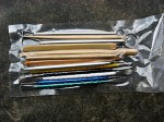 这套工具包括:大中钢丝刀各一(用于整体塑造出大形);小钢丝刀两把(用来雕细节);舌形刀两把(有不同大小和弧度的刀头,压、刮都可以);压平刀具一把;锥形刀具一把;切割刀一把;4把黄杨木质刀具,刮、碾、切都可以。总的来说,这套工具是属于大众型经济型的一类,是油泥雕塑造型必不可少的,拥有一套,就足以应付各种造型的油泥雕塑工作了