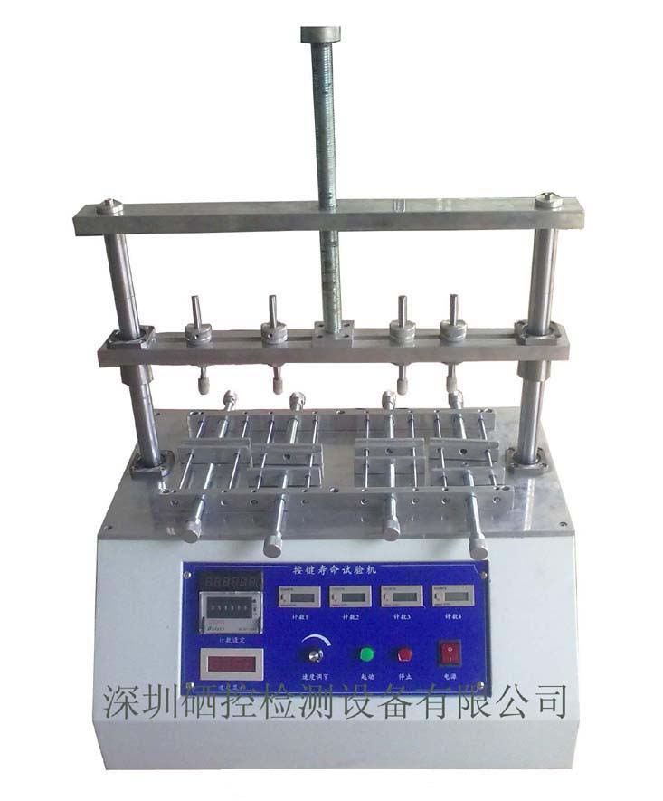 开关按键寿命试验机/开关按键测试仪适用于多种开关或小型成品,作开关或按键寿命试验.具有速度可调,次数设定,并同时四个工位做测试,达到设定次数后数据保持。荷重采用加载砝码方式,保证测量准确度。
