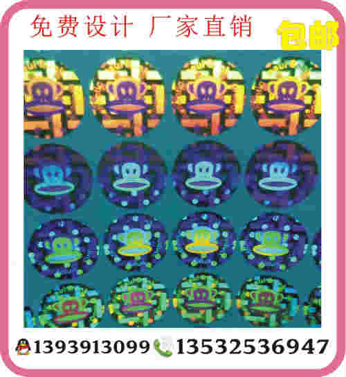 大嘴猴镭射防伪标签 眼镜数码防伪标、食品不干胶标贴印刷
