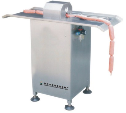 香肠扎线机是灌肠制品厂的贴心设备,它具有操作简单,易于掌握,使用方便的特点;生产能力高达:60条/min左右,产品长度随意可调3--25cm不等,只需一个工人即可。可有效的节省肠衣,降低企业成本,提高利润。该机采用气动传动棉线捆扎,干净、卫生、高效、节能,符合食品的卫生要求。该香肠扎线机是我厂根据我国的国情自行研制开发的,属半自动型,将直径小于40mm的香肠送入扎线机,靠人工移动香肠,调整定位确定香肠长度的范围(20-400mm)进行扎线。适用于生产天然肠衣、胶原蛋白、纤维、烟熏肠衣制作的产品。型号:ZH-01 气压:0.4-0.6MPa 生产能力:60次/min 肠衣范围:直径10-35 外形尺寸:1150*480*750mm