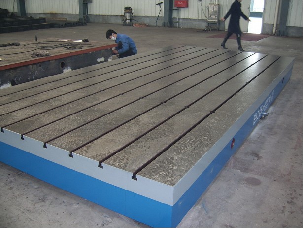 刮研平台材料及处理:材料为高强度铸铁HT200-300,工作面硬度为HB170-240,经过两次人工处理(人工退火600度-700度和自然时效2-3年),使用该产品精度稳定,耐磨性好。
