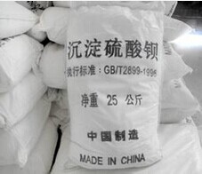 制取:由硫化钡溶液与加入经除去钙、镁后的芒硝溶液混合,于80℃进行反应,生成沉淀,经抽滤、水洗和酸洗后,调节pH值5~6,再过滤,干燥,粉碎制得。亦可用钡黄卤与芒硝溶液反应制得。