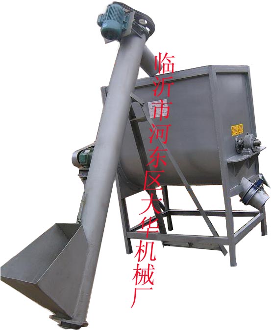 该机采用U型半圆筒卧放的形式,内部为罗带桨叶式结构,轴承在U型筒两端,通过减速机连接搅拌电机,同时配有上料提升机。物料通过一层螺带和外部桨叶搅拌整体运动的形式达到混合均匀的效果。配有2个出料口,适应于不同的接料方式,一端的出料口用于装大袋,中间的灌装机针对阀口袋设计,阀口袋装满后自动封口,方便快捷。该机型号大型齐全,具体参数如下: