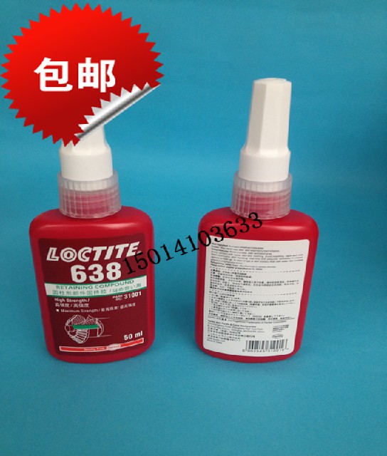 乐泰638胶水、loctite638、汉高乐泰638胶水、乐泰638圆柱形固持胶,最高强度的固持胶,用于动态负荷或周期性载荷的工况下,可固持配合间隙达到0.25mm的轴孔配合,在5分钟内初固化,
