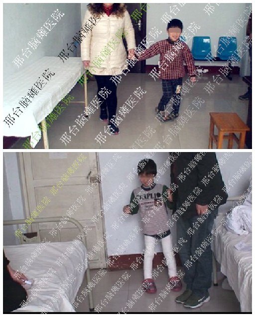 这是一位双足脚尖向里勾的患者,在外力的帮助下可以迈步行走,走路的时候双脚脚尖向里勾,脚放不平,并且在行走的时候自己控制不了自己的前进速度,因为脚下不平而且在迈步的时候是用很大的力量来完成这一动作,在外人看来特别的费劲,而且他自己也确实用力不小,形成了在走不了多大距离就会累的感觉产生。到了邢台脑瘫医院,经过检查后,此患者体征适合接受治疗,这样办理了入院手续,经过治疗后第七天可以自己独自下地站立,身体站直双脚放平。以上两张照片就是患者在治疗前和治疗后七天的照片,通过照片的比对来查看治疗的效果,一目明了,专科专业肢体畸形矫正在河北省邢台市红十字脑瘫医院。