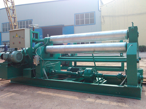 机械式三辊对称式卷板机性能特点:该机结构型式为三辊对称式,上辊在两下辊中央对称位置作垂直升降运动,通过丝杆丝母蜗杆传动而获得,两下辊作旋转运动,通过减速机的输出齿轮与下辊齿轮啮合,为卷制板材提供扭矩。