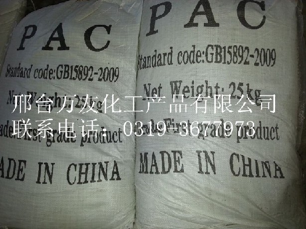 万友化工直销聚合氯化铝 聚合氯化铝生产厂家 聚合氯化铝价格 产品介绍: 聚合氯化铝是一种净水材料,无机高分子混凝剂,又被简称为聚铝,英文缩写为PAC,由于氢氧根离子的架桥作用和多价阴离子的聚合作用而生产的分子量较大、电荷较高的无机高分子水处理药剂。在形态上又可以分为固体和液体两种。固体按颜色不同又分为棕褐色、米黄色、金黄色和白色,液体可以呈现为无色透明、微黄色、浅黄色至黄褐色。不同颜色的聚合氯化铝在应用及生产技术上也有较大的区别。 公司介绍:   邢台万友化工产品有限公司地处于河北邢台高新技术开发区,公司成立于一九九三年,是一家经营化工原材料的专业公司,产品主要应用于电镀、污水处理、表面处理、有机溶剂、印刷造纸等多种行业,经营品种多达四百多种。 本公司技术开发人员有具有高级、中级技术职称的产品开发、中试放大、质量分析等专家组成,有着多年从事产品开发的丰富经营,市场营销人员有经营多年进出口贸易经验、对整个化工行业综合客观经济和微观进行观察和分析,收集信息快捷、及时掌握产品的市场动态与发展趋势。并具有良好的服务精神。 多年以来我们始终以降低客户成本为目的,货源以国内厂家直接合作为主,以最新的产品、最优的价格和完善的服务取胜,目前已成为化工行业较有影响的原材料供应商。我们始终坚持“质量第一,诚信经营,服务至上”的经营理念,积极开拓市场,目前已与全国各地多家大型企业建立了良好的合作伙伴关系,并赢得良好信誉。 联系方式 联系人:王经理 手机:13303192060 固话:0319-3677973 0319-3676071