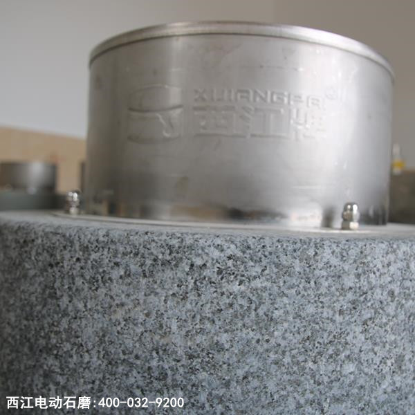 西江石磨磨浆细腻不发热,做的肠粉具有薄,爽,滑,鲜美等特点,是肠粉的质量保证,是店面的形象招牌。磨盘大,纹理讲究,设计合理,西江石磨磨盘纹部分选用几十年老石匠的精湛手工技术打造而成;外圆使用车床车制而成外表光滑亮丽,易于清洗。机械部分由十多年的模具和机械制造经验技术之精华制造而成。