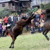 在广西融水举行传统的斗马比赛。
