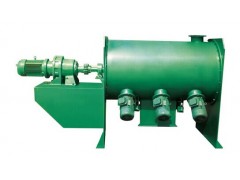 犁刀式混合机由圆形筒体、传动机构、犁刀、飞刀四部分组成;工作时,犁刀做圆周运动,物料被犁刀刀面分流成两个方向形成双向物料流,与两侧犁刀分流过来的物料相互交叉形成对流,当物料流经高速飞刀时又被高速飞刀叶片剪切和抛洒,从而在较短时间内达到均匀混合。本机的混合精度高,混合时不产生离析,尤其对于容易团聚的物料,可以起到解聚和打散的作用。